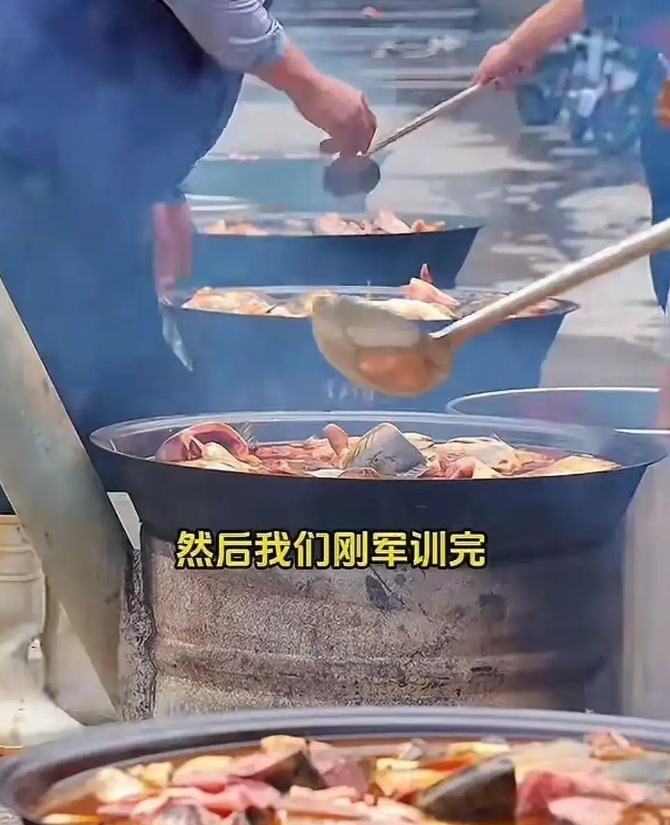 后续的处理、清洗、烹饪,全程由师生共同完成。食堂门口支起十口大锅,厨师抡起铁勺翻炒,葱姜蒜与酱料在热气中沸腾,鱼块逐渐染上诱人的酱色。有学生一边排队一边举着手机直播:“看!我们学校的‘全鱼宴’,免费!”