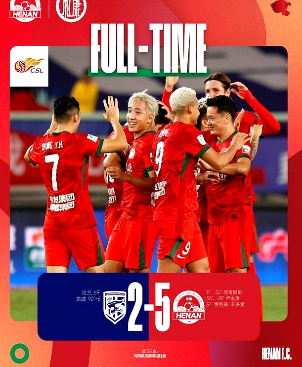 河南队5-2大胜武汉三镇,靠定位球和反击提前保级,武汉深陷降级危机。