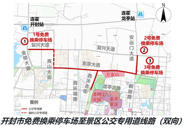 每逢佳节倍拥堵,这几乎成为国内旅游城市的常态。作为知名旅游城市,开封在节假日期间面临着巨大的交通压力。据统计,去年国庆假期,开封累计接待游客量同比增长显著,随之而来的是城区主要道路的通行压力大增。 面对这一挑战,开封市没有选择简单粗暴的限行措施,而是采取了更加精细化的管理方式。通过临时调整公交专用道的使用规则,在保障公交优先的同时,最大化道路资源利用效率。 这一调整覆盖了复兴大道(金明大道至夷山大街段)、东京大道(夷山大街至安远门大道段)等关键路段,专用时间统一调整为早7点至晚9点。这些道路连接着开封多个热门旅游景点,是游客集散的重要通道。 特别值得关注的是,夷山大街(复兴大道至东京大道段)机动车道最右侧道路被设置为临时公交专用道。这一临时举措显示出开封市在交通管理上的灵活性与创新性。