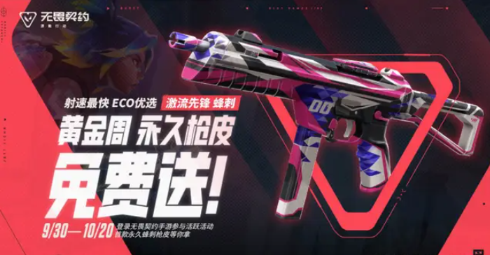 《无畏契约手游》深谙玩家对个性化装扮的追求,在9月30日至10月19日长达20天的活动期内,为登录玩家准备了令人惊喜的”激流先锋 蜂刺”永久枪皮。这款充满朋克潮流元素的皮肤,以其独特的设计风格和炫酷的视觉效果,必将成为玩家展露个性的利器。