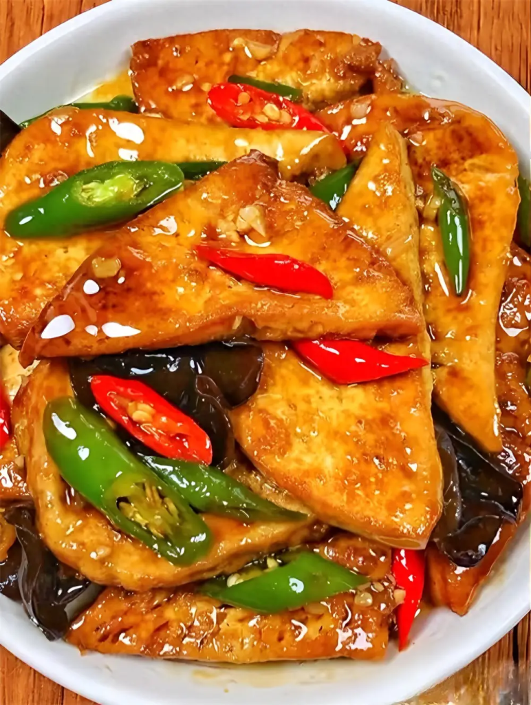 在辅料方面,大蒜的加入能与葱香形成完美搭配,增添层次感。而青红椒木耳的搭配则不仅提升了菜品的色彩对比度,还增加了口感的变化和营养的多样性。木耳富含胶质和膳食纤维,与豆腐的软嫩形成有趣的口感对比,而青红椒则带来一丝清爽的脆感和微甜的风味。